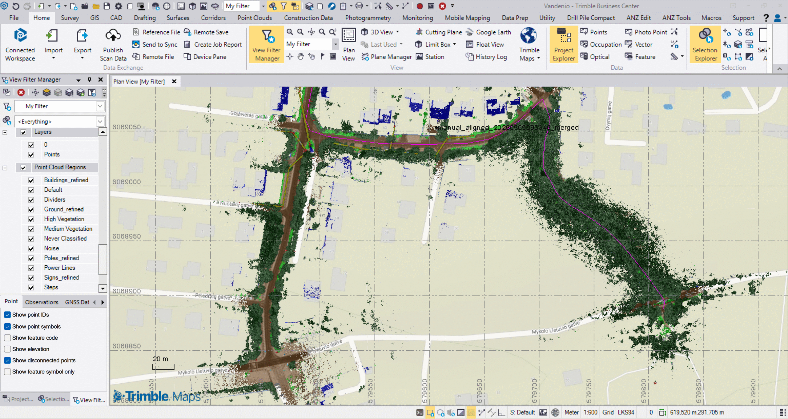 Järeltöötluses saab punktipilve tihendada kuni 1 mm punktivahega, et jäädvustada ka kõige peenemad detailid. Samal ajal võimaldab tarkvara ka vähendada punktipilve mahtu, muutes andmed kergemini hallatavaks ja sobivaks näiteks joonte eraldamiseks või mahuarvutusteks.