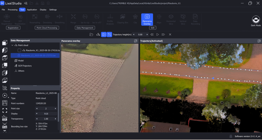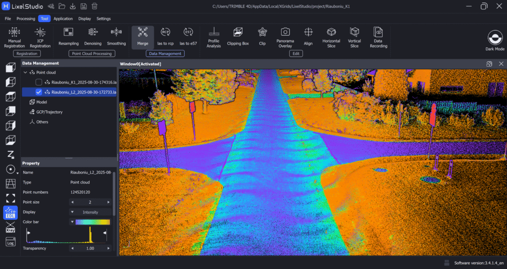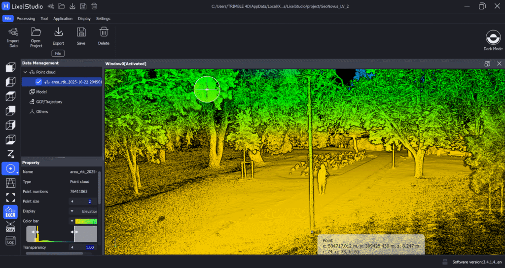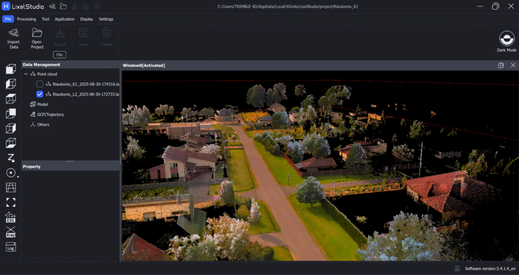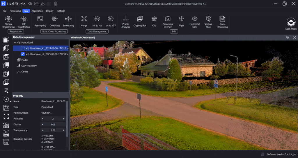 Ainult riistvarast ei piisa – tulemused sünnivad tarkvaras. XGRIDSi andmed töödeldakse LixelStudios, kus täpsustatakse SLAM-trajektoorid, kontrollpunktid ja värvijoondus enne eksporti. Tarkvara toetab standardseid formaate .las, .e57 ja .ply, tagades ühilduvuse selliste platvormidega nagu Trimble, Autodesk ja Bentley.